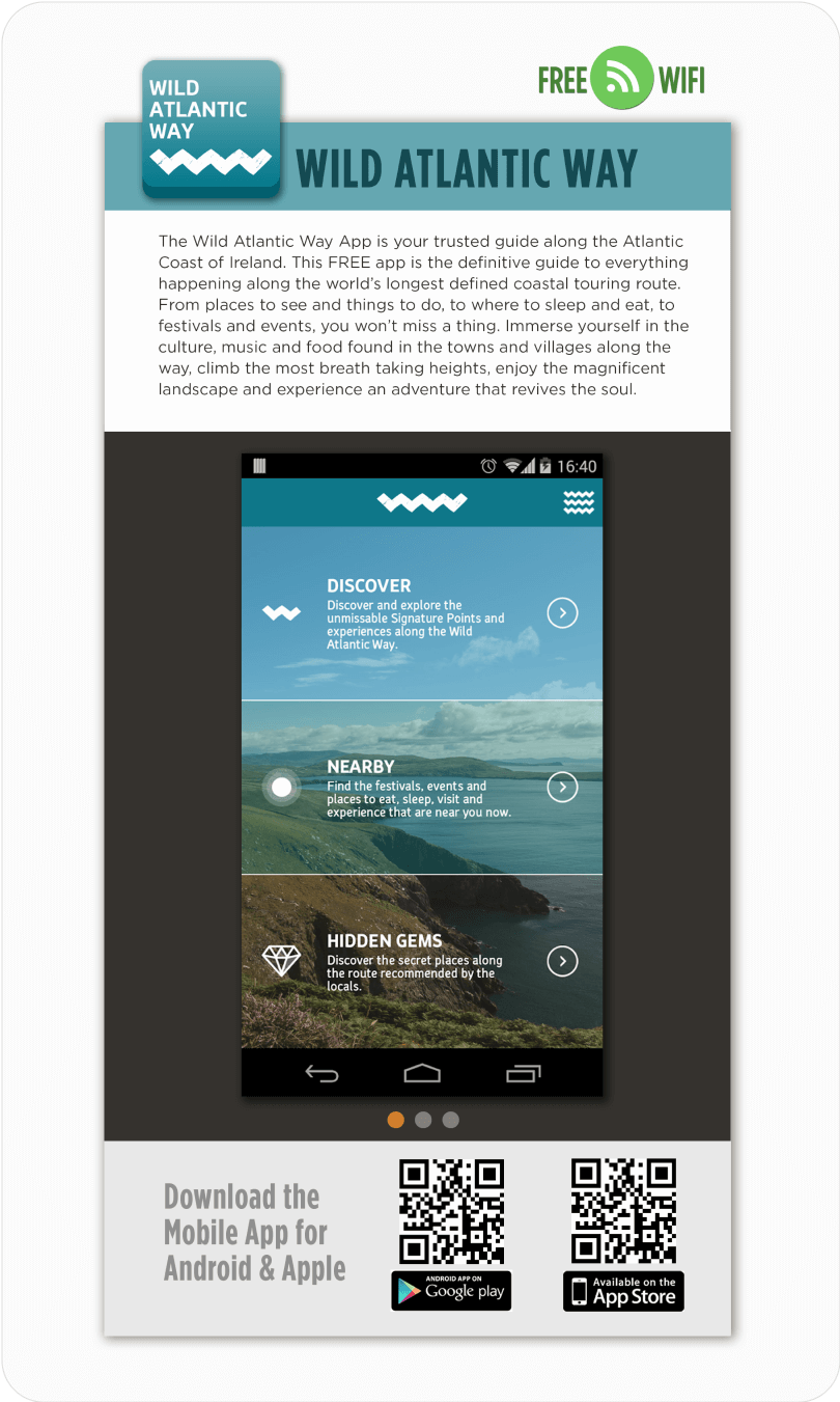 I designed the template for the large screen that houses recommended app downloads useful for visitors touring Dublin and Ireland. Each app includes some details, a QR code for easy access, and an image highlighting the app's main features